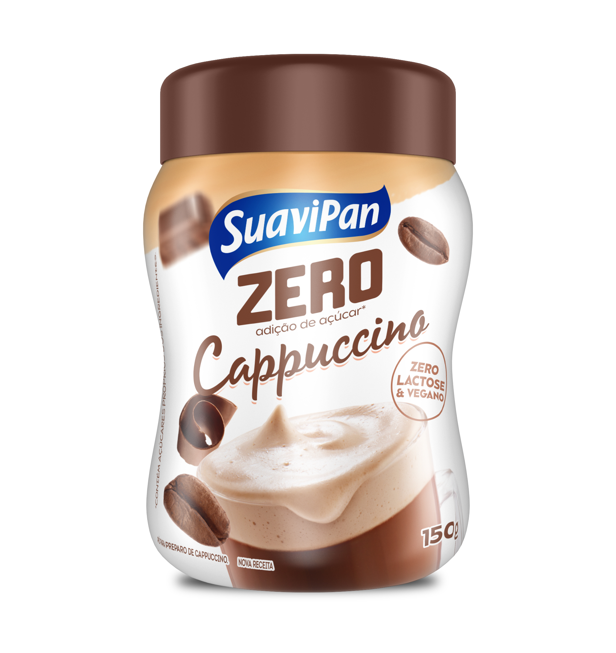 Ingredientes: Os ingredientes do Capuccino Suaviopan são leite em pó integral zero lactose, maltodextrina, café solúvel, cacau em pó lecitinado, regulador de acidez: bicarbonato de sódio, emulsificante: mono e diglicerídeos de ácidos graxos, espessante: goma xantana, edulcorantes: sucralose e acessulfame de potássio, aromatizante e antiumectante: dióxido de silício. O Cappuccino Suavipan NÃO CONTÉM GLÚTEN; NÃO CONTÉM LACTOSE.