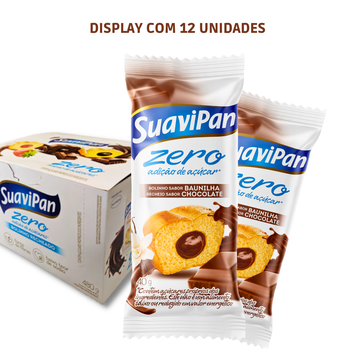 O Kit de 12 Bolinhos Zero Açúcar SuaviPan - Baunilha com Chocolate é ideal para ser consumido no café da manhã, entre as refeições, durante passeios, assistindo TV ou no cinema, proporcionando uma opção prática e deliciosa para qualquer momento.