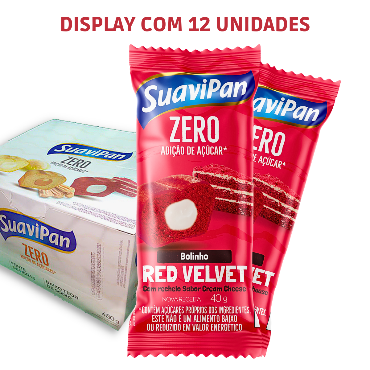 O Kit de 12 Bolinhos Zero Açúcar SuaviPan - Red Velvet com Cream Cheese é ideal para ser consumido no café da manhã, entre as refeições, durante passeios, assistindo TV ou no cinema, proporcionando uma opção prática e deliciosa para qualquer momento.