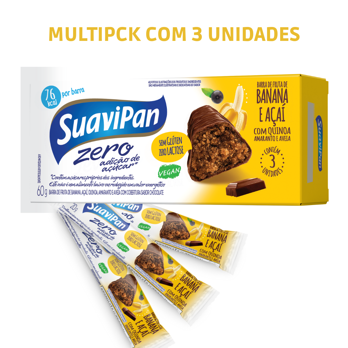 Armazene o Kit 3 Barrinhas de Frutas Zero Açúcar SuaviPan - Banana com Açaí em local fresco e seco, longe de produtos de limpeza.
